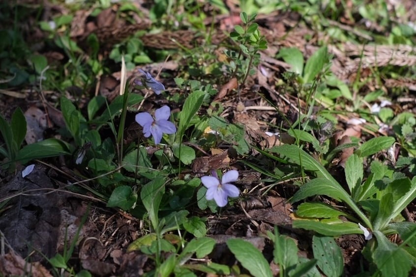 春の裏山に、ひっそりと咲くスミレ。